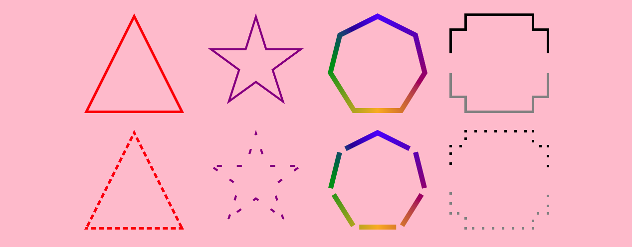 Add borders to any kind of complex shape. All you have to do is to define the path of your shape, the thickness of the border and you are done.
