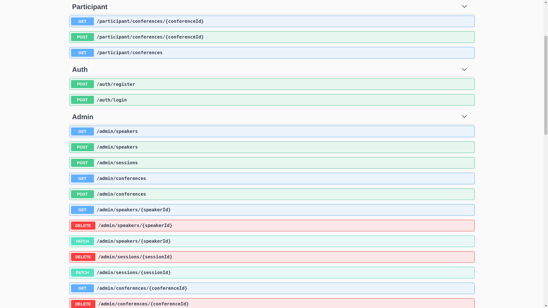 - Conference Management: this component is responsible for creating managing entities like Speaker, Session, Conference and Participant. It is directly used for participants when subscribing to a conference.
