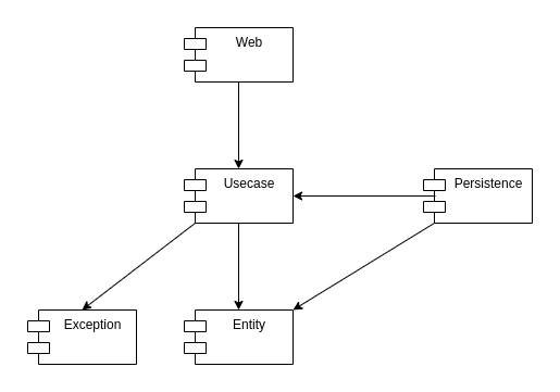 - Usecase: this module contains the application specific business rules. It relies on the Exception and Entity modules, and it is referenced by the Web module. I tried my best to keep the usecase(and entity) completely decoupled from implementation details of external libraries (Spring included).