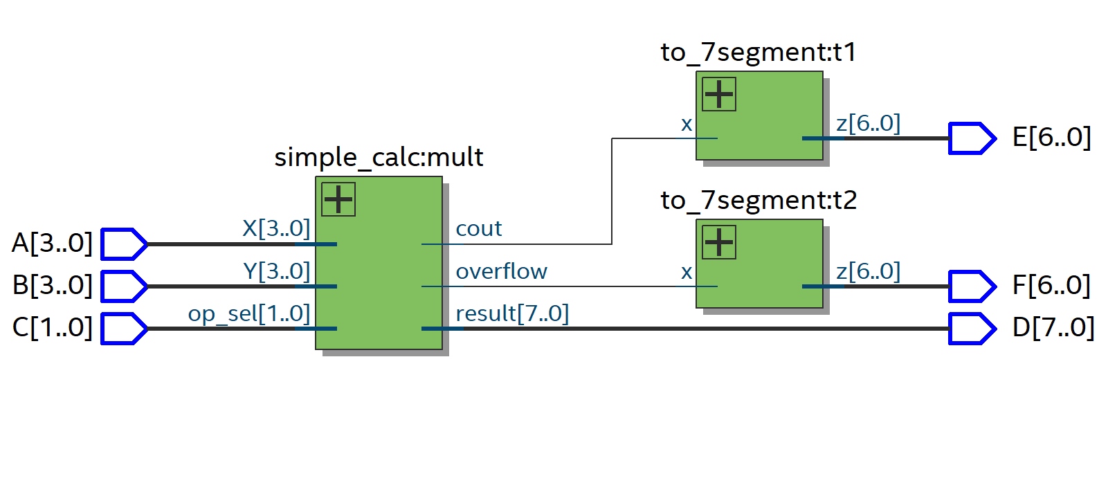 An 8-bit calculator that can multiply, add and subtract. Created and simulated in Quartus Prime and physically implemented in DEC-SOC1 FPGA.