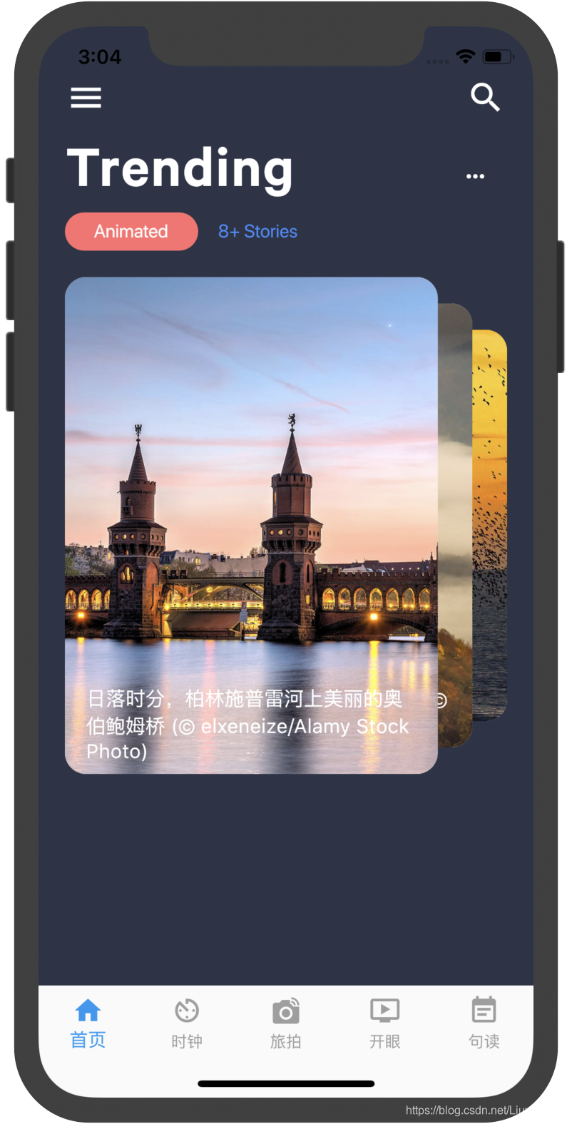 Flutter_phoenix 首页 每次加载八张bing壁纸,可以滑动,但是有个问题,图片是倒序排列. 时钟 这里是使用了YouTube视频写的 诗句 使用每日诗句API的接口,很不错,但是文字纵向排列有点问题,如果是五言,或者宋词,画面就会不协调。 开眼 待完成 旅拍 待完成 关于Flutter 整体感觉不错,首页图片在Android的模拟器运行特别流畅,ios模拟器有点延迟。
