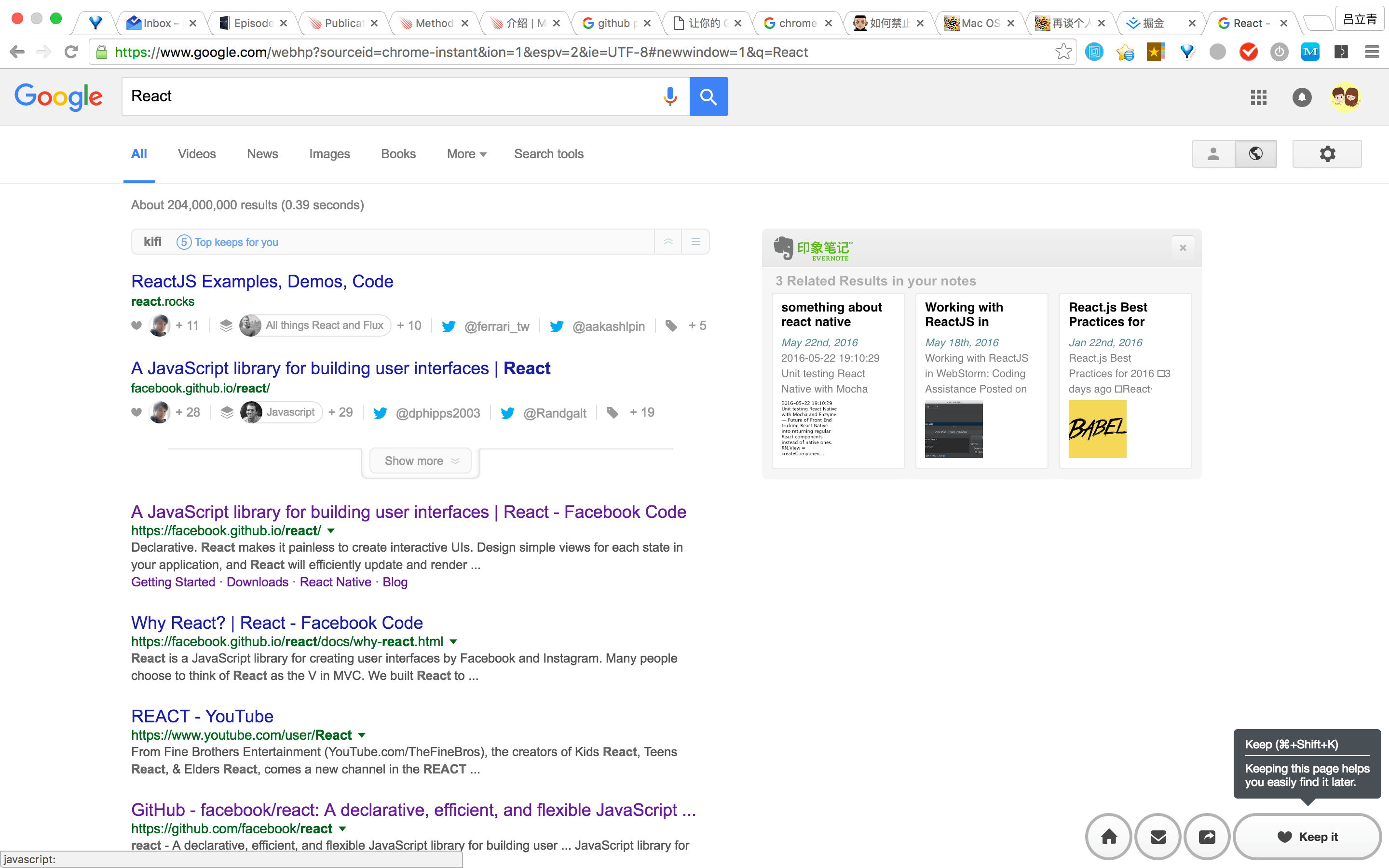 除了同步到博客以外,想要重点讨论 Reflection 对于个人而言的价值所在,也就是指个人知识系统的闭环。印象笔记的内容可以集成到 Google 搜索结果的右边栏,那么当你搜索关键词的时候印象笔记也会相应的给出自己的答案。若是自己在之前放入印象笔记的知识是经过整理了的话,那印象笔记所展示的内容甚至会比 Google 更懂自己。这就是知识闭环的一种形态,在最恰当的时候唤醒人的相关记忆,而且你可以相应地更新笔记内容从而进一步丰富你的知识系统。