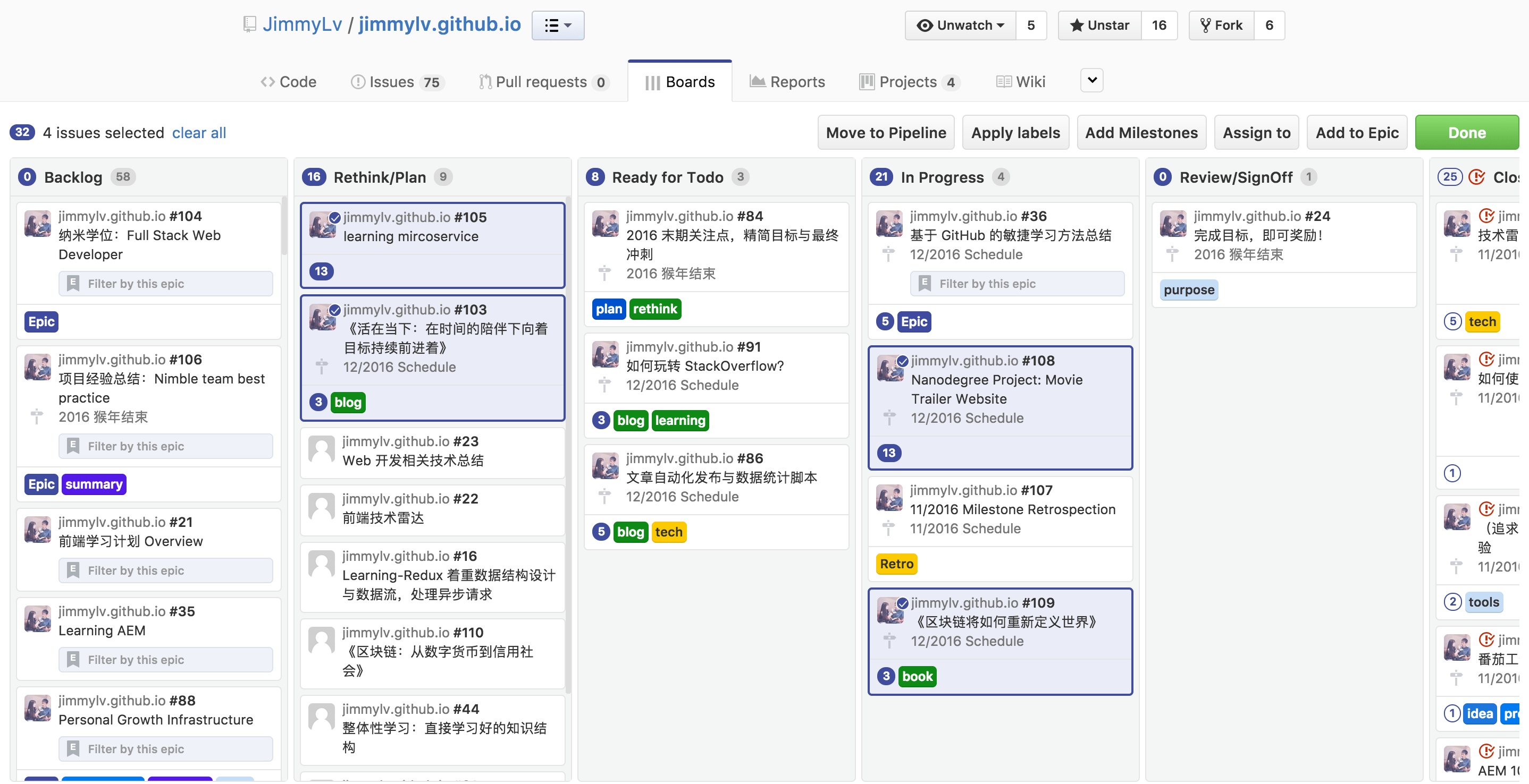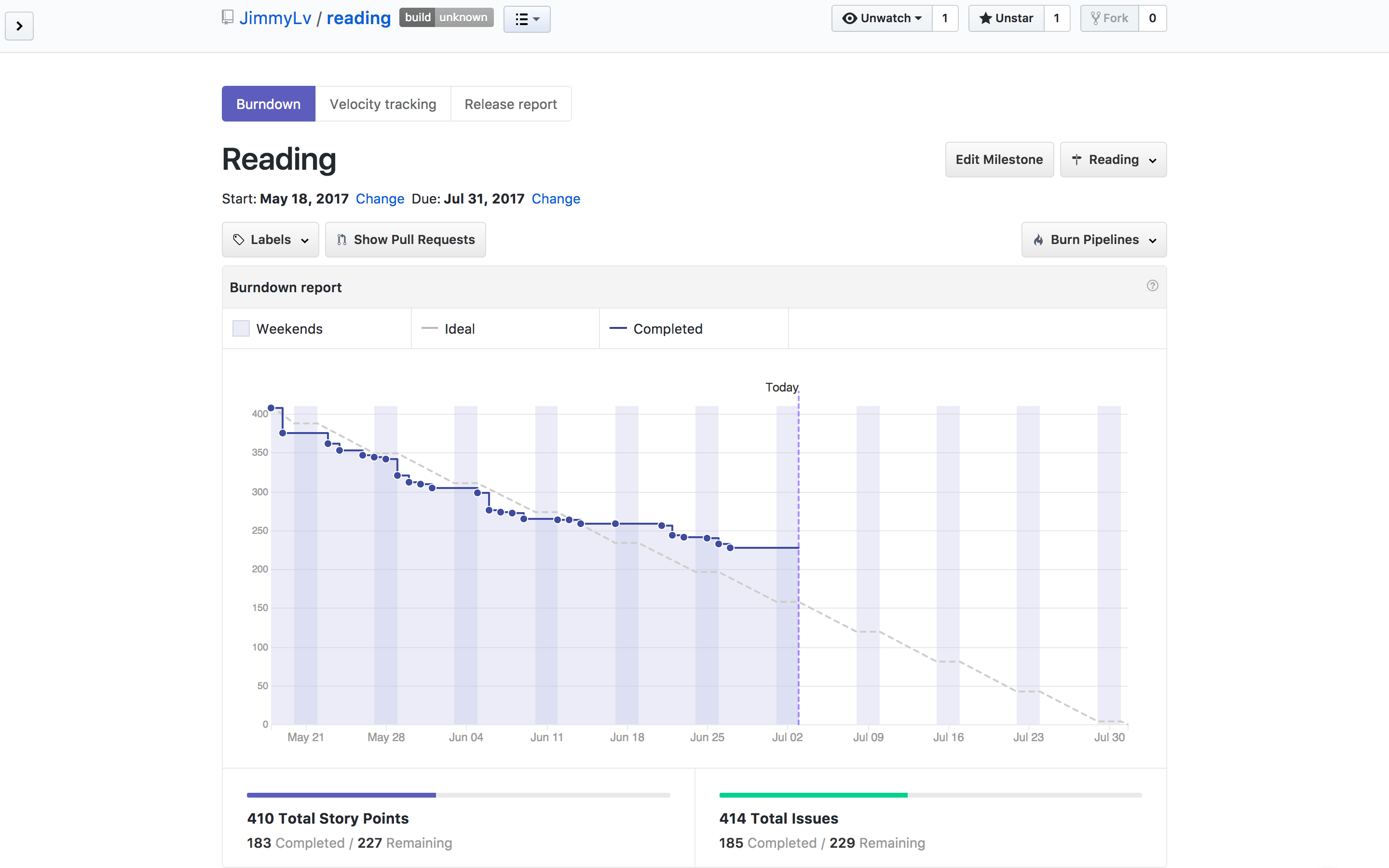 上回博客大赛写过一篇 基于 GitHub 的敏捷学习方法之道与术,其中提到使用 GitHub Issue 来管理自己的学习计划,从而就又产生了这么一个想法,就是将我的稍后阅读列表跟 GitHub 结合起来,使用 ZenHub 丰富的图表功能将阅读体系进行追踪与可视化。