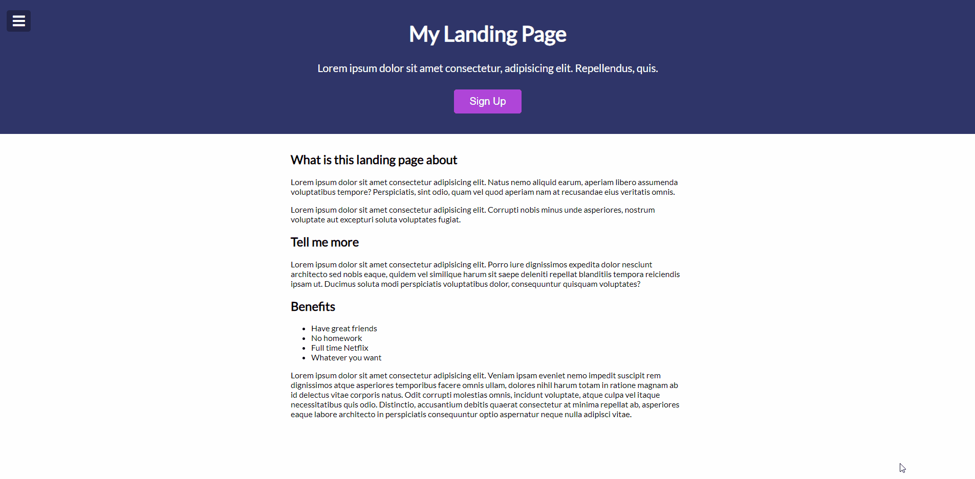 In this project I use little bit of vanilla Js to add couple of events. It's really easy to make menu slider with just css. I made this just a tiny animation. It's a smooth display to use.