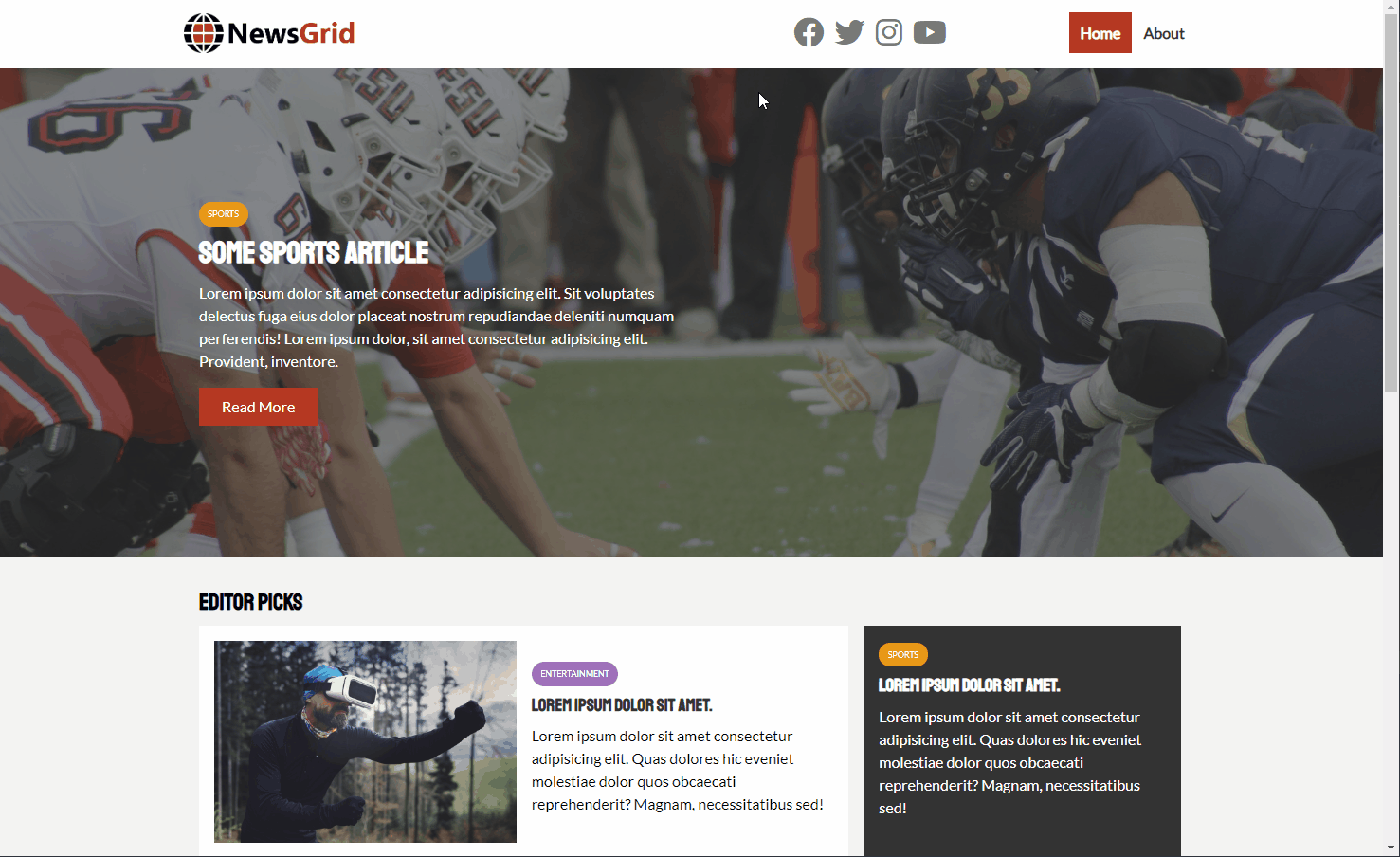 In this project I fully focused CSS Grip. I created template full of grids. It's great to understand this approach of CSS. It's a quite smoth project for this goal. Also I practice reusable classes in this project too, such as .btn .primary