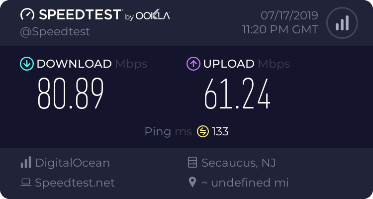 Tested with Debian 9 server through 100Mbps connection. Round trip time to server is 128 ms, average packet loss is about 0.5%.