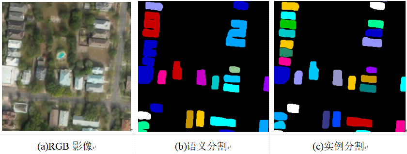 语义分割在基于高分影像的建筑提取中不能区分不同的建筑个体,因为在建筑密集区其通常将同一个类的对象紧密地打包成一个连接的组件,即使是优秀的语义分割网络模型也不可避免地会产生这样的结果。而实例分割可以较好地解决这个问题,精准到建筑个体的分割结果在绘制地图、城市规划以及人口估计中将会大有可为。