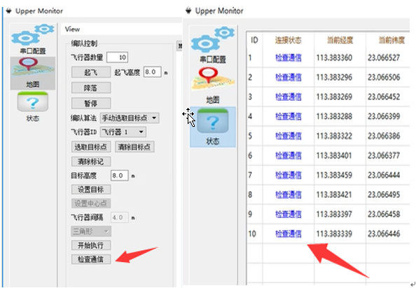 | 状态页 | 从串口页获取到所有无人机的当前状态信息,并定时刷新 |