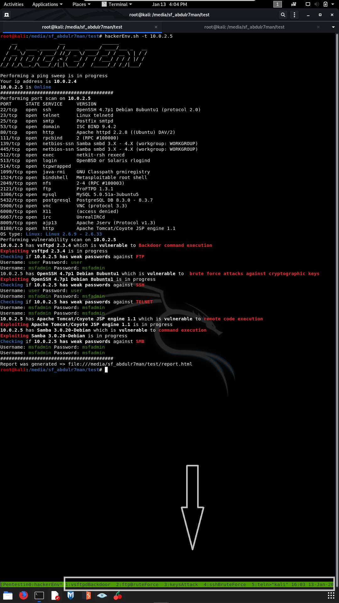 hackerEnv -oA genetrate report in HTML and DOCX format