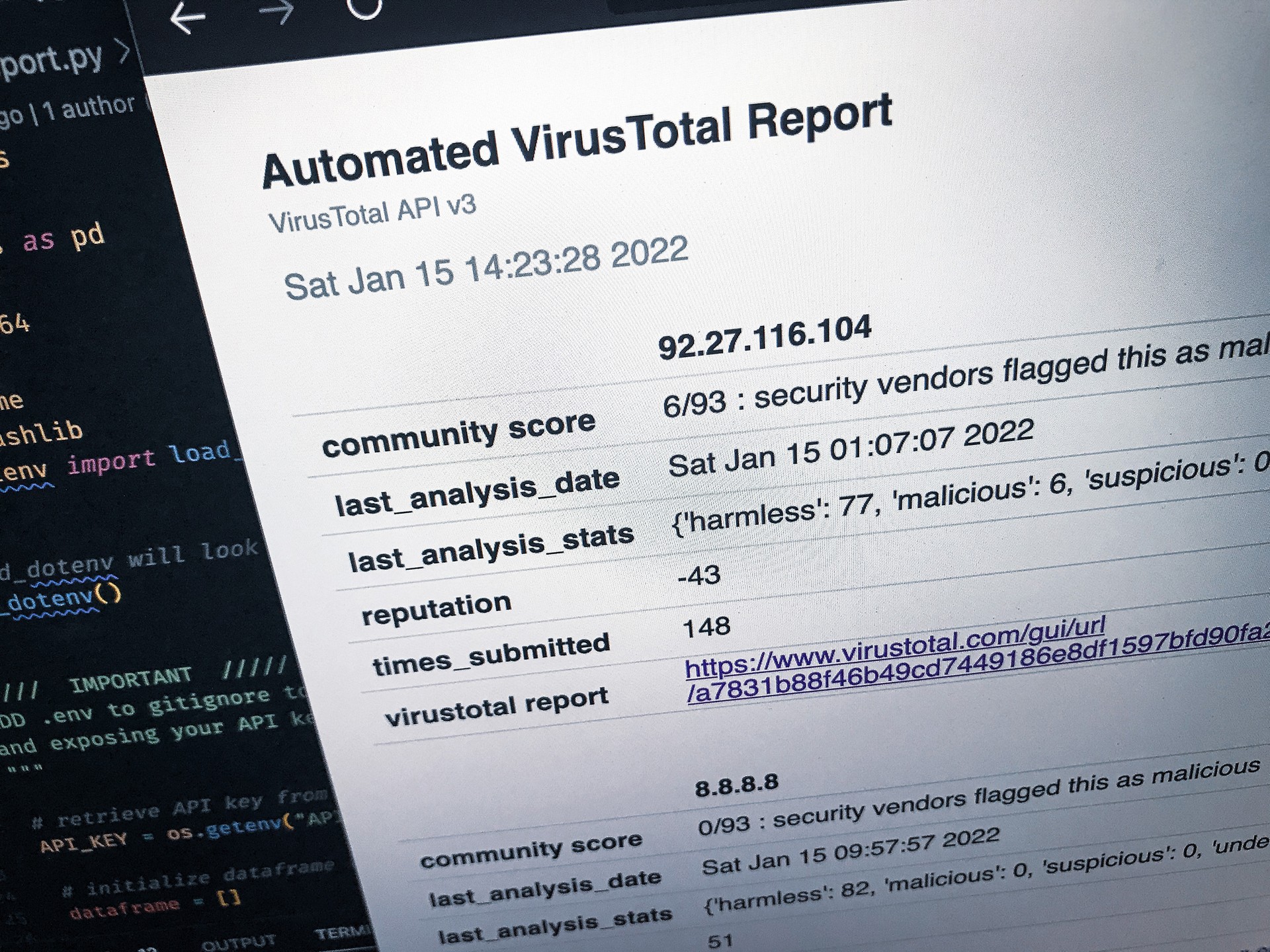 For more information about this script, check out my article on "Security Automation with Python — IP address and URL analysis via VirusTotal's API v3 with HTML Reporting."