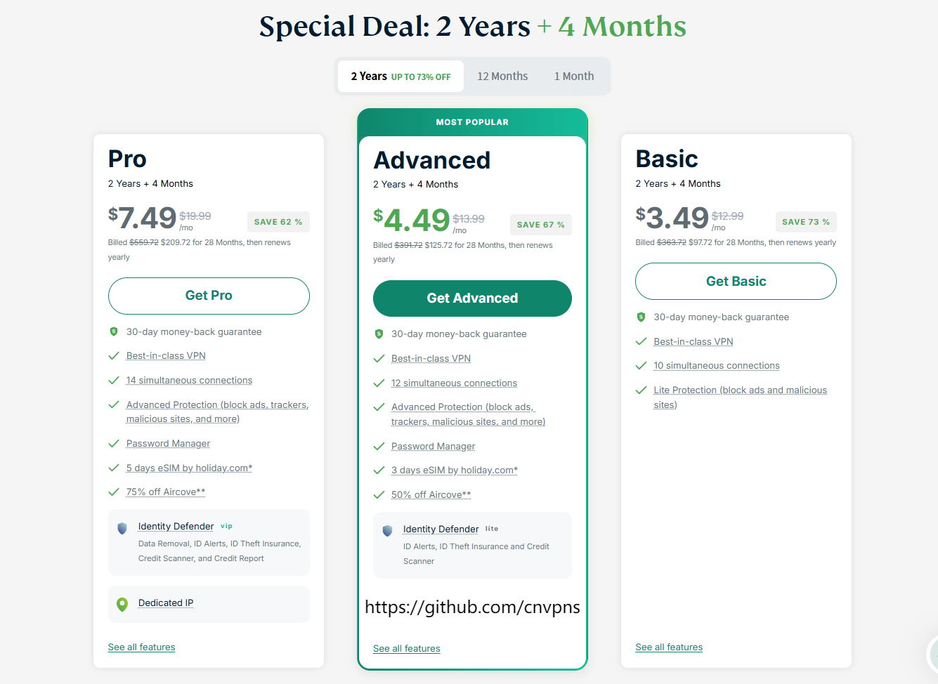 其中,2年套餐无疑是最具性价比的选择,尤其适合需要长期稳定VPN服务的用户。通过专属优惠购买2年套餐,还可额外获赠4个月,总计可使用28个月,折合每月仅需3.49美元。这样优惠的价格,不仅降低了平均成本,还能让用户以更实惠的方式享受到全球顶级VPN服务,既保障隐私和数据安全,又能畅享稳定、快速的网络访问。