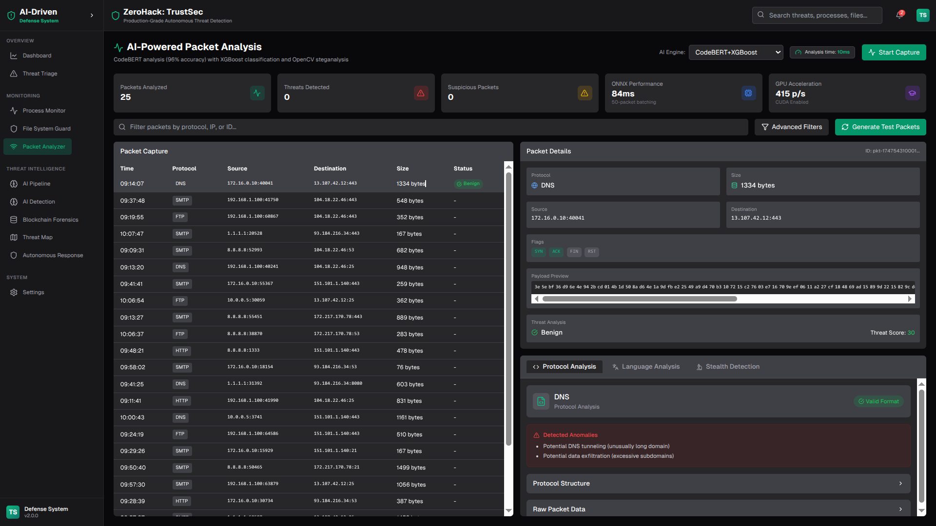 - Network Packet Analysis - Real-time traffic inspection and classification