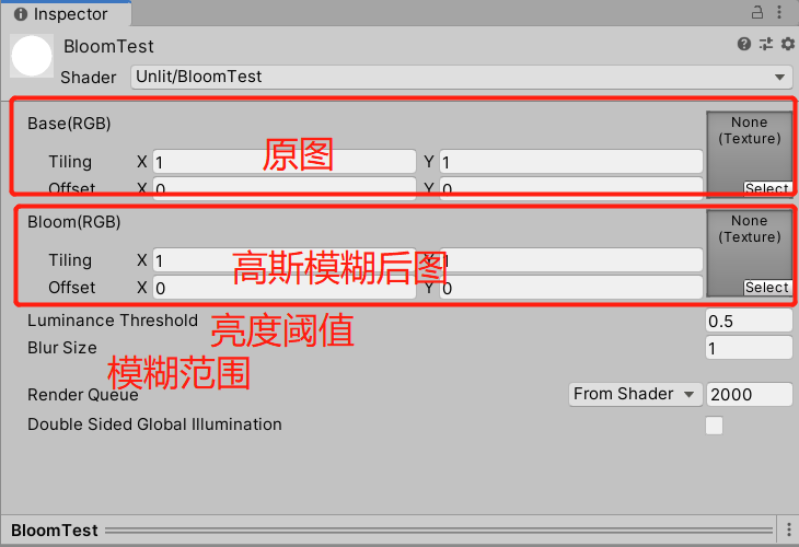 public Shader bloomShader;//bloom test shader 需要用cs脚本给shader传数据