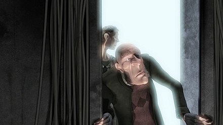 现实中,当人由黑暗的地方走到光亮的地方,会眯起眼睛。人在黑暗的地方,为了看清楚对象,瞳孔会放大,以吸收更多光线;当突然走到光亮的地方,瞳孔来不及收缩,所以眯起眼睛,保护视网膜上的视神经。