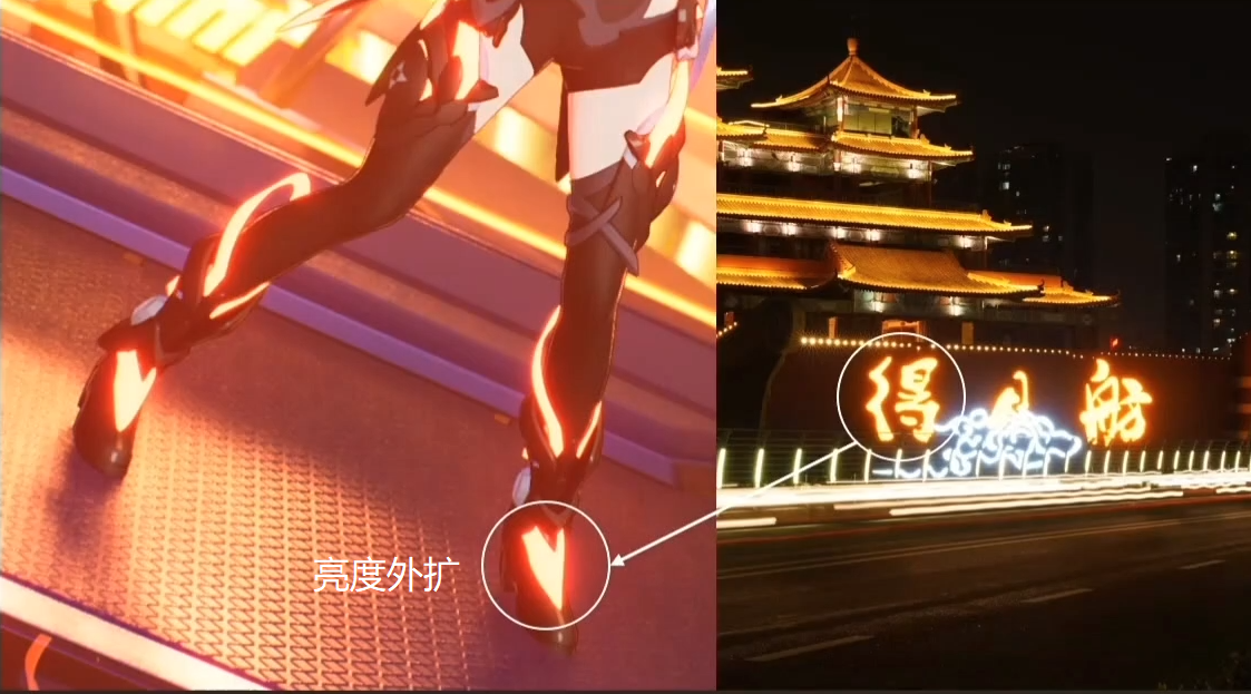 该效果会在高亮度物体周围产生条纹或羽毛状的光芒,以模糊图像细节。如果物体背光,从第三人称观察,光线会表现得更加真实,并在某种程度上与遮挡物体产生交叠。