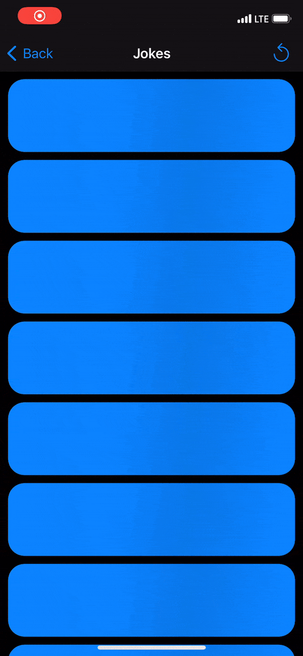- Jokes list - this is more an example of Diffable Data Source that is used to display random jokes from an API and also favorited ones that are stored using Core Data. This also shows how to add headers to CL and loading effect. There is also context menu on the items and text-to-speech (because why not?)