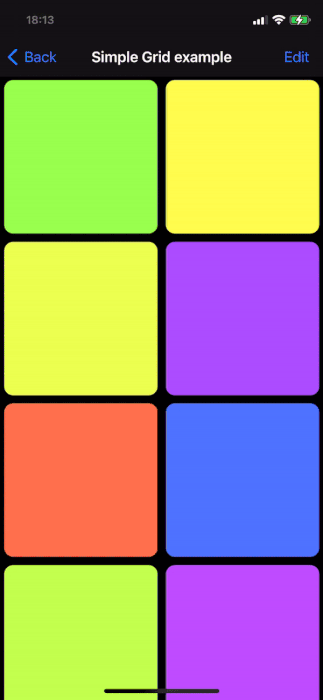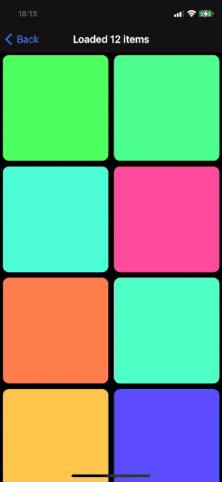 - Lazy grid example - this grid starts with 12 items and when you scroll at the end it "loads" more (see GIF below)