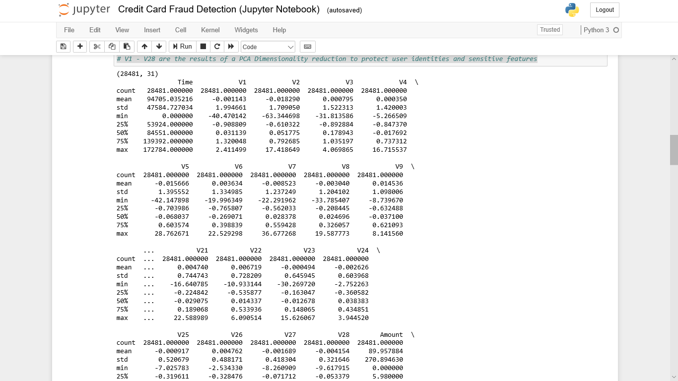 Warning:- C:\ProgramData\Anaconda3\lib\site-packages\sklearn\ensemble\iforest.py:247: FutureWarning: behaviour="old" is deprecated and will be removed in version 0.22. Please use behaviour="new", which makes the decision_function change to match other anomaly detection algorithm API. FutureWarning) C:\ProgramData\Anaconda3\lib\site-packages\sklearn\ensemble\iforest.py:415: DeprecationWarning: threshold_ attribute is deprecated in 0.20 and will be removed in 0.22. " be removed in 0.22.", DeprecationWarning)