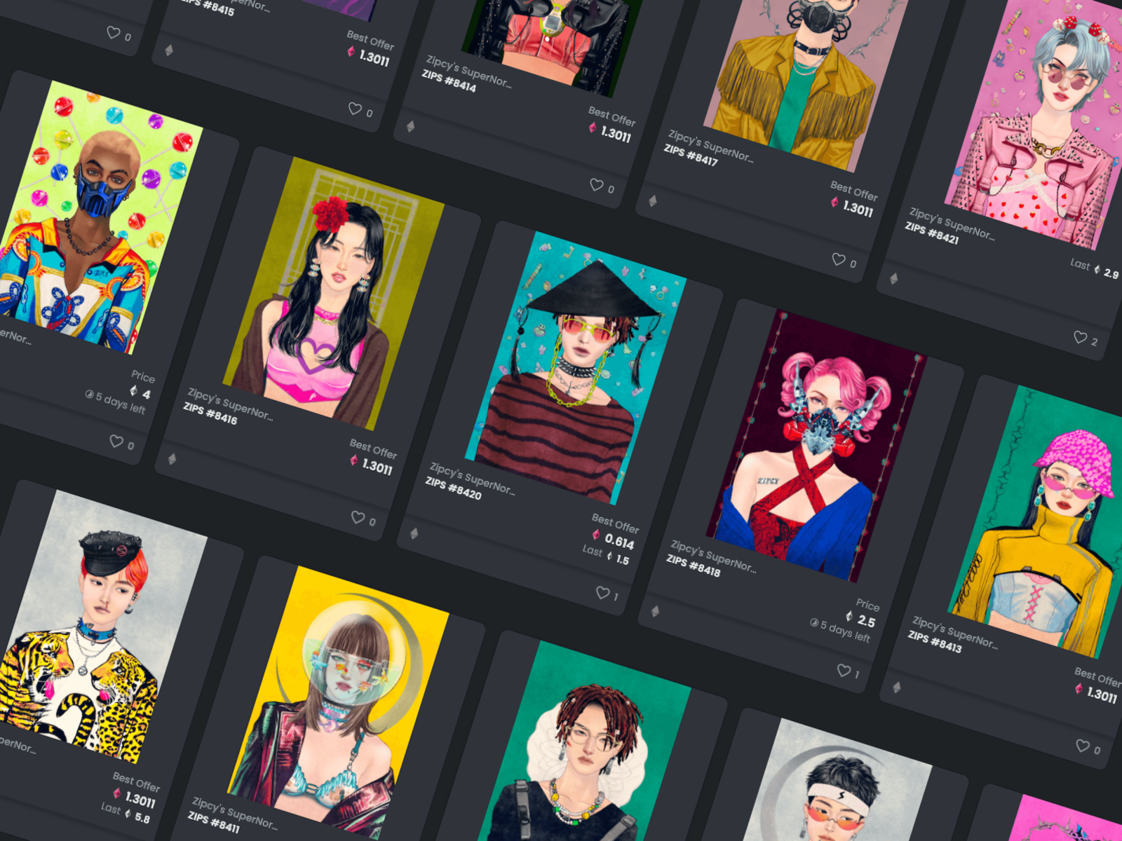 2021 年可以說是 NFT 大爆發的一年了,除了名人相繼創立自己的 NFT,也有各式各樣的商業模式和額外賦能不停的被開發出來;像是主打邊玩邊賺的 (Play-to-Earn,P2E) GameFi 項目「Axie Infinity」、擁有即可兌換一天一碗且連續七天雞肉飯的「元宇宙第一雞肉飯」,或是方格子創作平台與藝術家合作原創、持有即可解鎖一年份 Premium 會員資格和不定期禮物的「Vocus and Friends」等。而在新年連假期間,意外發現的「Zipcy's SuperNormal」更是融合亞洲與時尚元素,在成千上萬的 NFT 項目中脫穎而出。為其藝術風格感到驚艷的我,決心將 8,888 張作品圖儲存並作為自動定期更換的電腦桌布,故有了這次的專案。