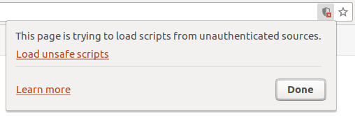 In order to avoid these, tell you browser not to block scripts from unauthenticated sources after you’ve entered the URL of your endpoint.