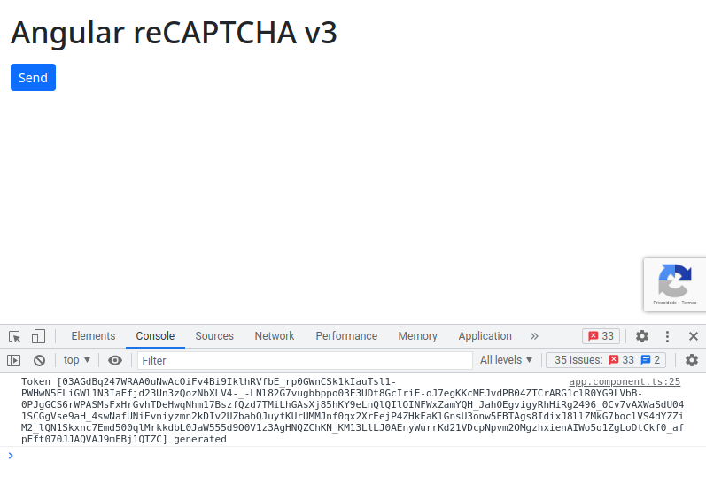 Application example built with Angular 18 and adding the Google reCAPTCHA v3 using the ng-recaptcha library.