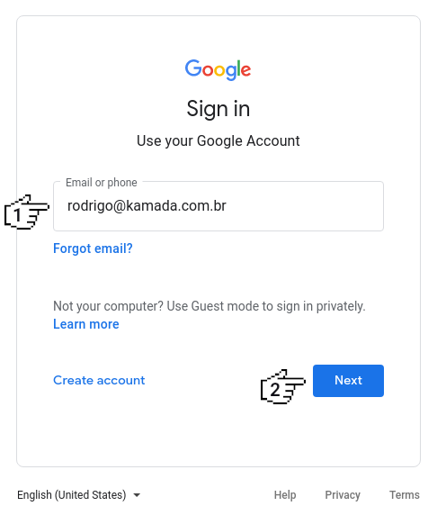 2. Fill in the field Email or phone and click on the button Next to login with your Google account and if you don't have an account, just create a new account.