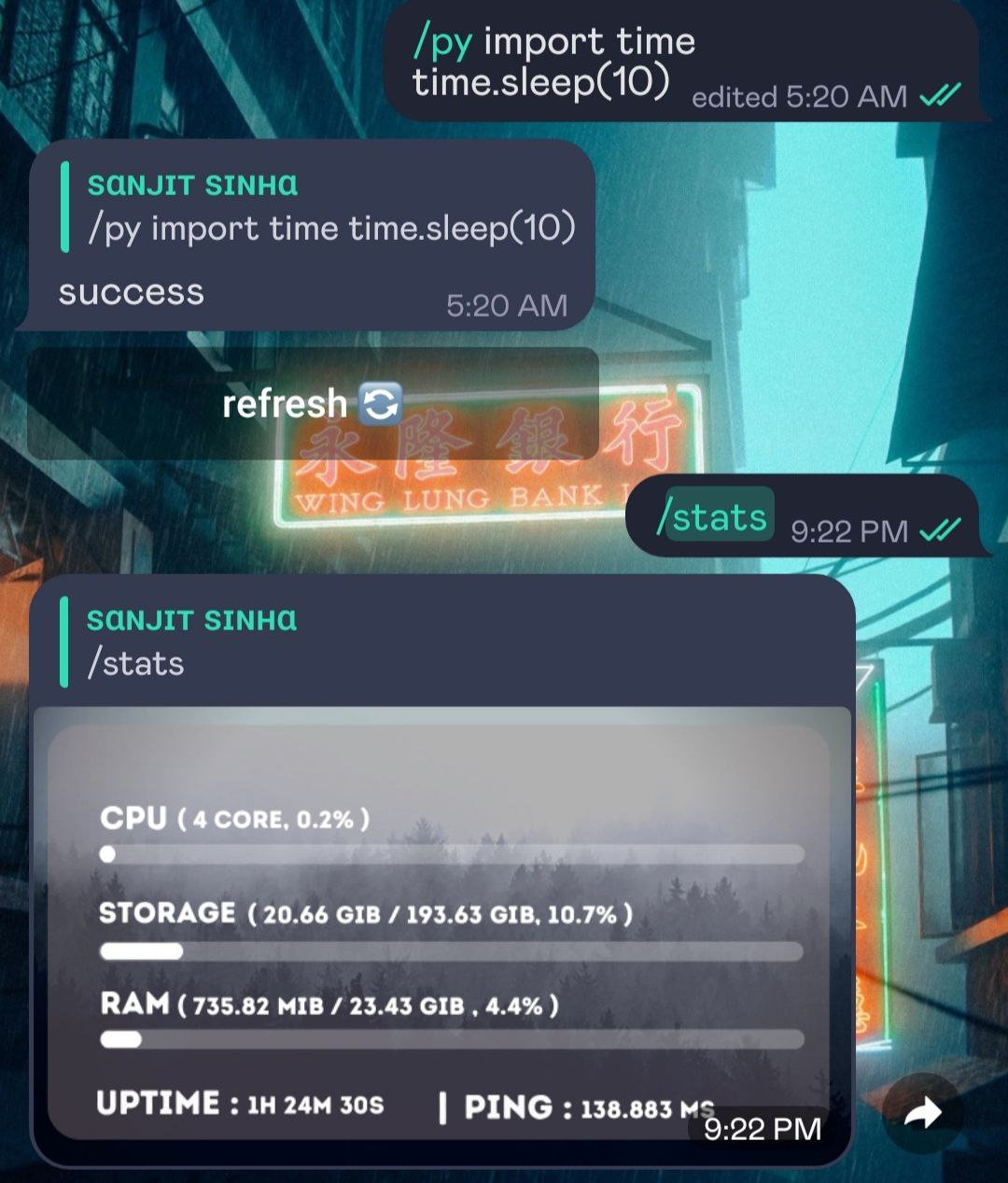 /ping - Ping the telegram api server