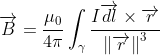 According to the Biot Savart Law, a field generated by an arbitrarily shaped wire described by the curve carrying a complex current I at the point described by the displacement vector