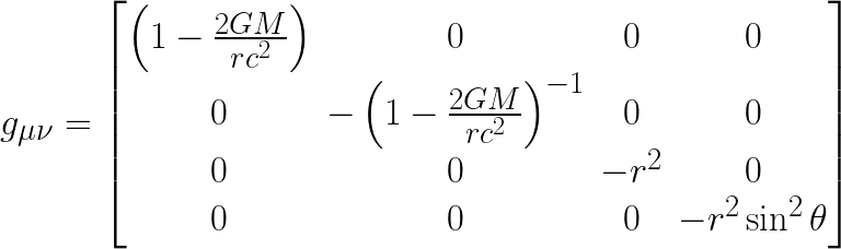 [ (1-(2*G*M)/(x1*c**2)), 0, 0, 0 ],