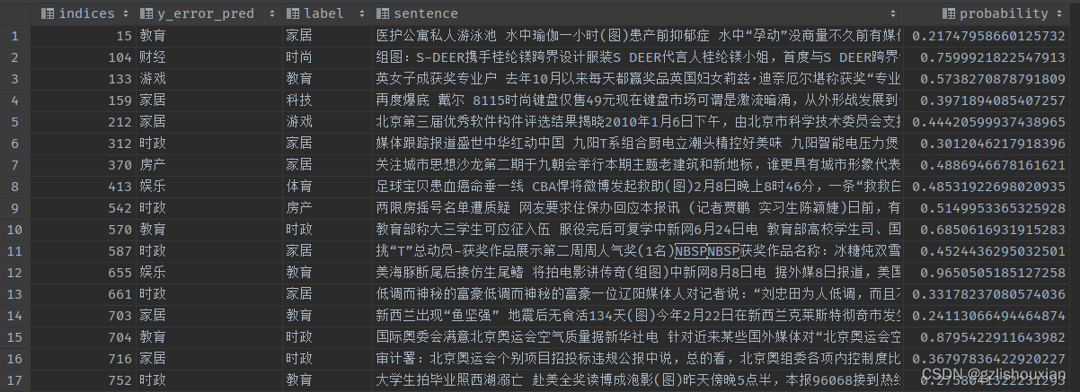 批量测试完同时会给出一份bad_case文件,方便更细致的纠正标签和判断模型效果