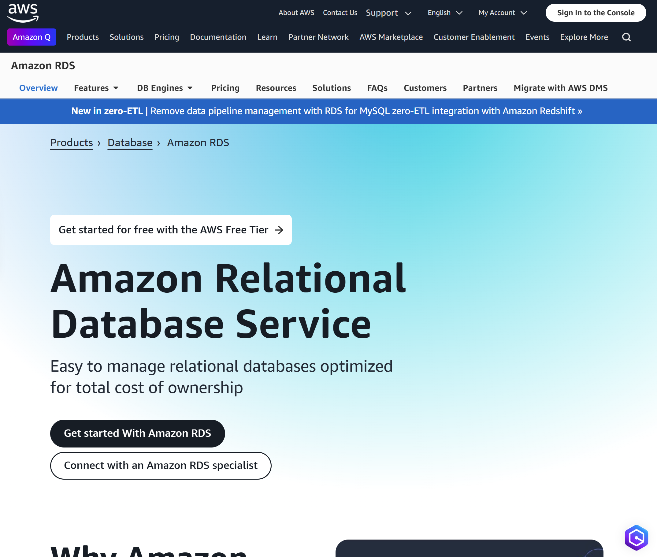 Go to the AWS RDS webpage and create an account or sign in. For ease of use, a hyperlink to the webpage is included in this tutorial. Next, go to the search bar and search for RDS.