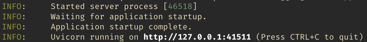 - Note the miner URL on startup as shown in section 4. ex: Uvicorn running on http://127.0.0.1:41511