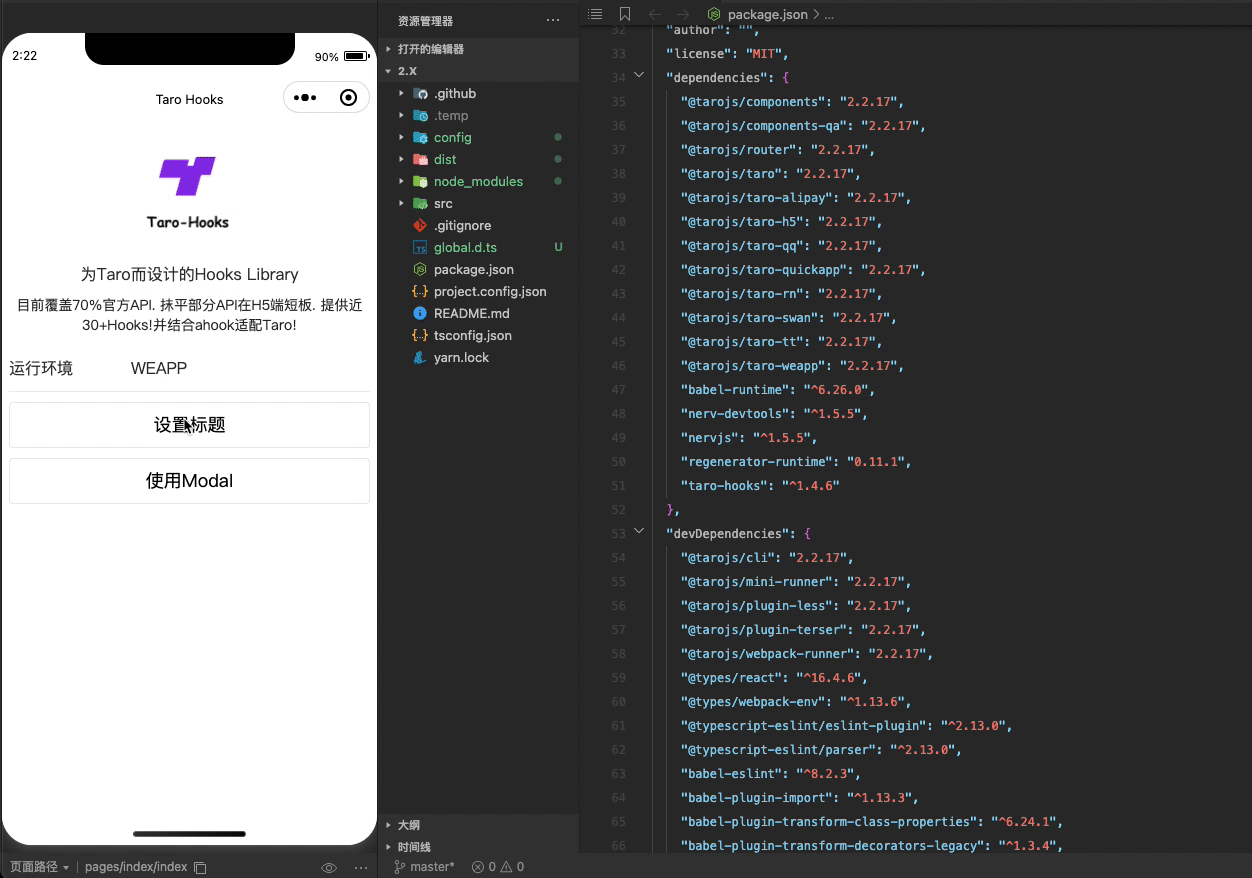 此外只是简单适配2.x. 本质上taro-hooks的设计定位为3.x. 故不会分太大的心力在2.x中, 使用者需注意. 若有问题请提issue至主仓库.