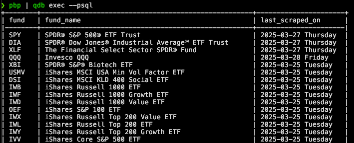 INFO: Successfully created temporary table '__qdb_cli_temp_cme_liq_ba_ZT_e1827495_381a_4029_a744_aa3982a85fe6'.