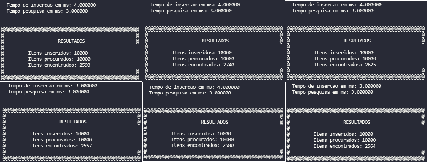 Exemplo de algumas saídas salvas para realizar o calculo da média (Árvore binária).
