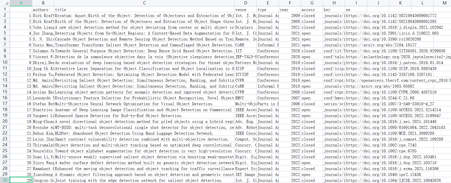 dblp 计算机科学书目提供有关主要计算机科学期刊和会议记录的开放书目信息,dblp 最初于 1993 年在特里尔大学创建 。为了方便查看 https://dblp.org/ 中的论文搜索信息,将查询后的数据进行了一些处理。